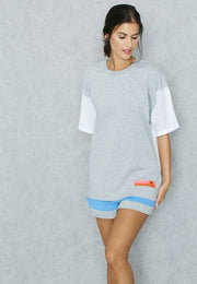 - Ribbed round neck and short sleeves