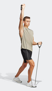 Make the most of push day in this sleeveless training tee. Moisture-absorbing adidas AEROREADY keeps you dry through heavy bench press sets. Dropped armholes give you extra freedom for overhead movement, and the longer hem in back keeps you covered. Made with 100% recycled materials, this product represents just one of our solutions to help end plastic waste.