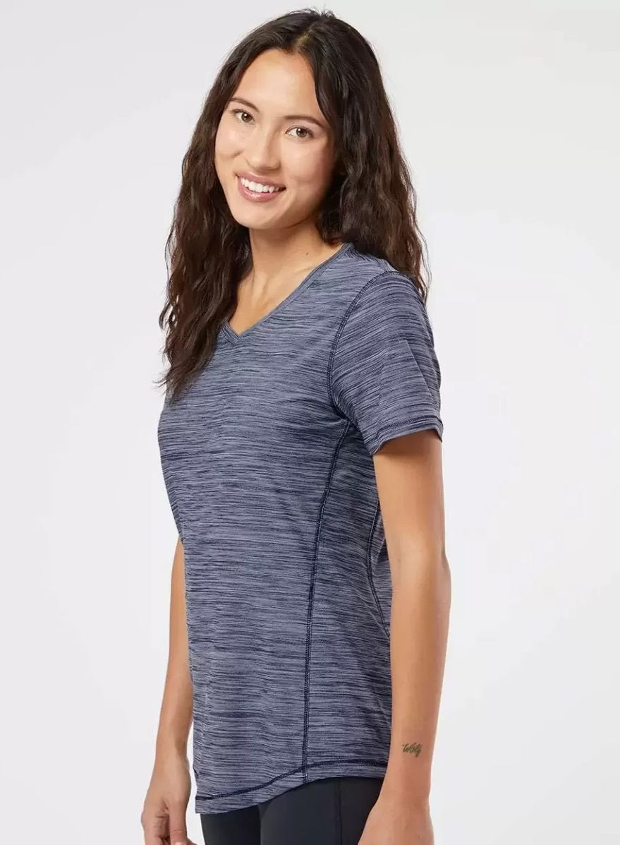 Tee off in comfort in this golf tee that features built-in UV protection. The soft stretch build lets you move naturally through every swing. A shaped hem complements the V-neck cut for a casual look.