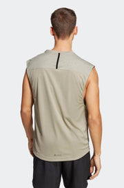 Make the most of push day in this sleeveless training tee. Moisture-absorbing adidas AEROREADY keeps you dry through heavy bench press sets. Dropped armholes give you extra freedom for overhead movement, and the longer hem in back keeps you covered. Made with 100% recycled materials, this product represents just one of our solutions to help end plastic waste.